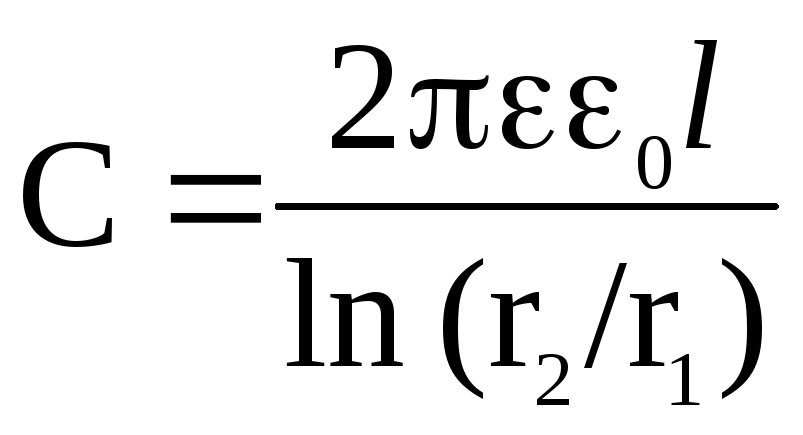 где l длина обкладок; r2 и r1 внешний и внутренний радиусы соответственно.