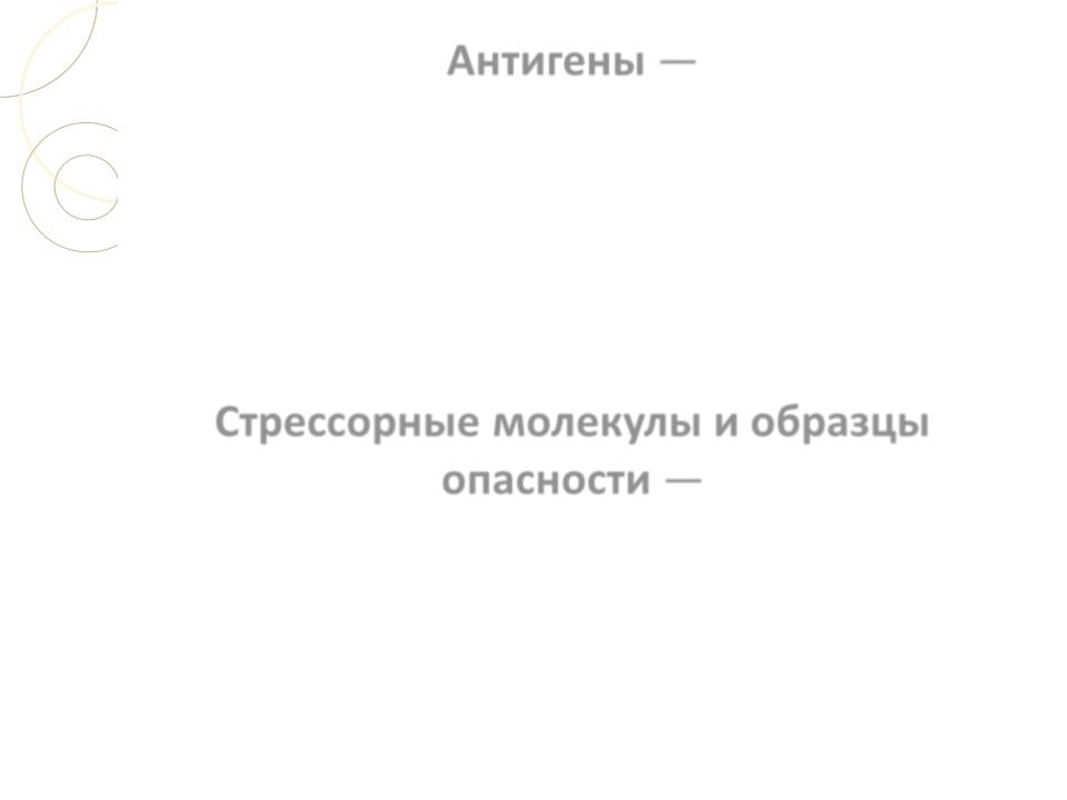 собственные молекулы организма на мембранах клеток, сигнализирующие преимущественно об опасности эндогенного происхождения (трансформации,повреждении, клеточном стрессе)