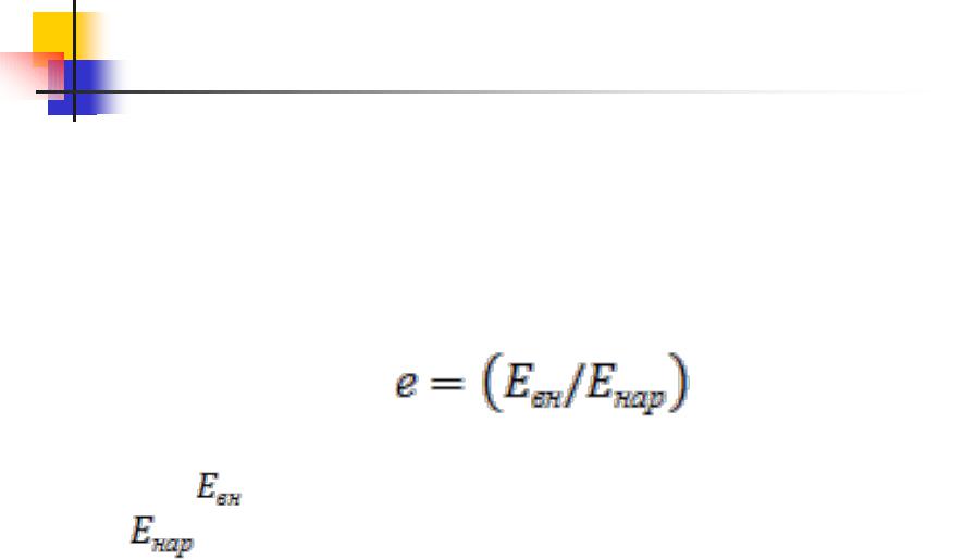 Коефіцієнт природної освітленості (КПО) е являє собою відношення освітленості природним світлом який-небудь точки всередині приміщення до значення зовнішньої освітленості горизонтальної поверхні, що освітлюється дифузним світлом повністю відкритого небосхилу (не прямим сонячним світлом) і виражається у відсотках: