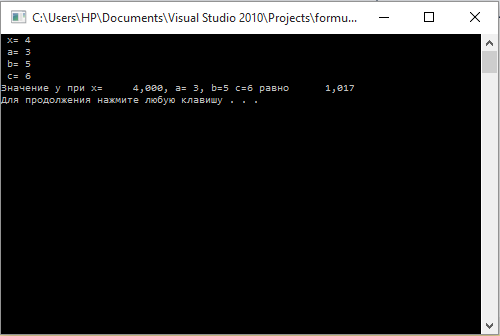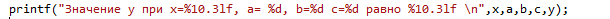 На следующем шаге осуществим вывод полученного значения у. В формате вывода числа укажем, что само число должно занимать 10 символов, после запятой должно отображаться три знака: