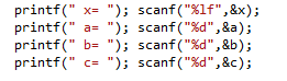 Несмотря на то, что алгоритм программы правильный, сама она неинформативна. Для того, чтобы сделать ее более простой в использовании, добавим так называемые подсказки пользователя, выведя перед вводом переменных сообщения о том, какие данные следует вводить: