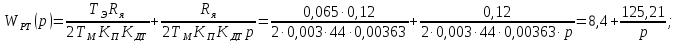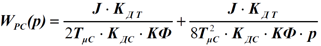 Передатна функція замкнутого оптимізованого контура швидкості з пропорційно-інтегральним регулятором і при наявності фільтра має вигляд: