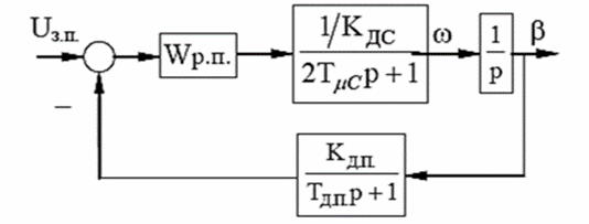 Для зменшення перерегулювання на вході регулятора швидкості ставиться фільтр (апериодическое ланка) з постійною часу 4TμC