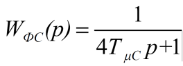 Для зменшення перерегулювання на вході регулятора швидкості ставиться фільтр (аперіодична ланка) з постійною часу 4TμC (Рис.7).