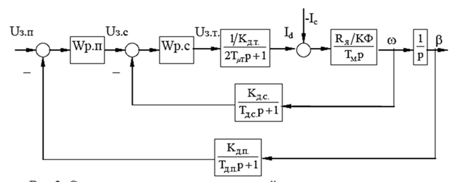 Рисунок 2 - Структурна схема трьохконтурної системи регулювання з оптимізованим контуром швидкості без ОС по ЕРС