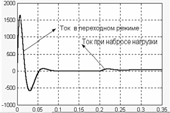 Рисунок 4.б - Зміна струму при подачі керуючого і обурюючих впливів