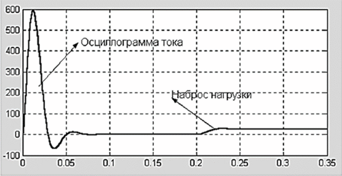 Рисунок 6.б - Зміна струму при подачі керуючого і обурюючих впливів