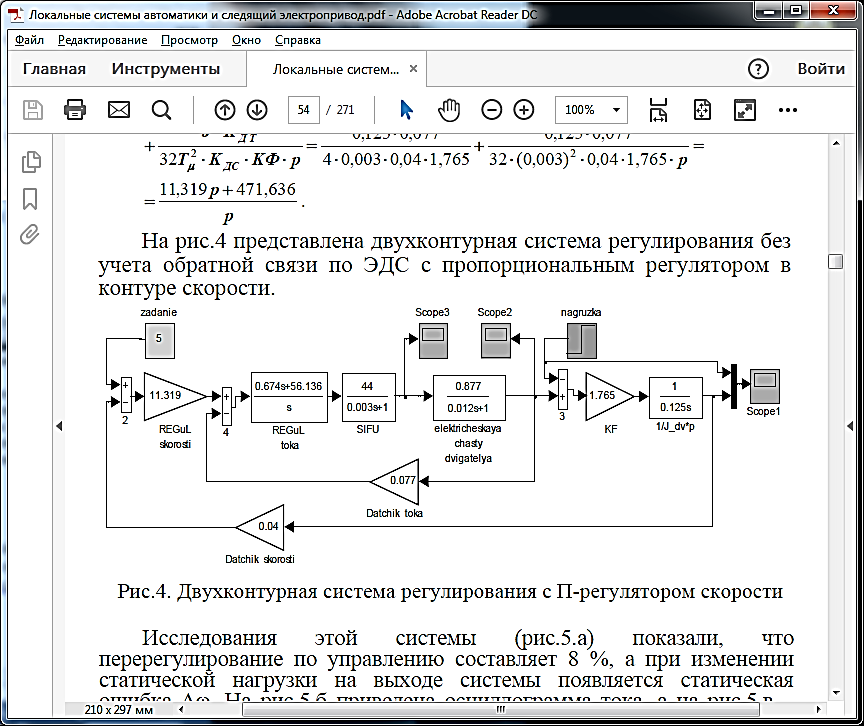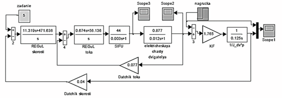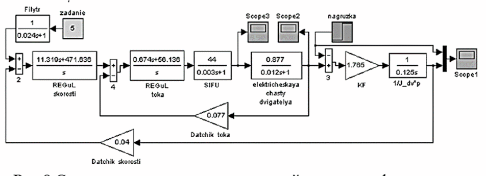 На Рис.5 представлена та ж система регулювання, але в контурі швидкості застосований ПІ-регулятор.