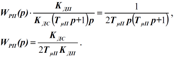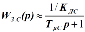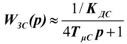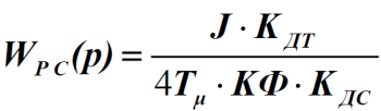 Некомпенсовані постійну часу контуру швидкості, так само як і контуру струму, визначаються без урахування інерційності зворотнього зв'язку (TДС = 0). Отже, Tμс =2TμT = 2Tμ