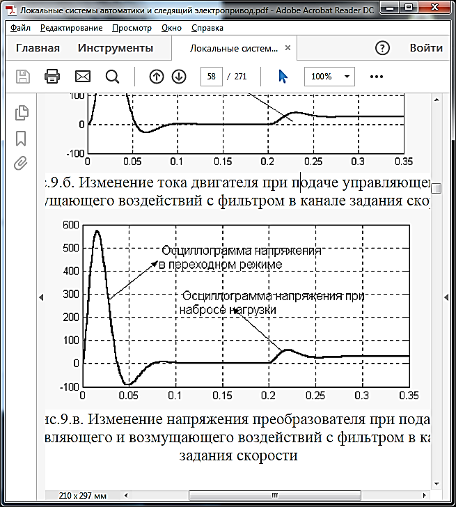 Перехідні характеристики по управлінню і обуренню двоконтурної системи з ПІ-регулятором швидкості і фільтром в каналі завдання швидкості представлені на Рис.8.