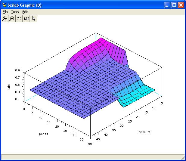 Ця функція викликається з командного рядка вікна SCILAB і має наступні параметри виклику: plotsurf( fls [, ivar, ovar, vivar [,npart [,mod]]]).