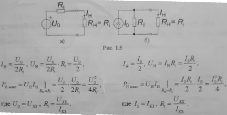 Как экспериментально определить параметры генератора с резистивным внутренним сопротивлением задающее напряжение U0 задающий ток I0, внутренне сопротивление Ri - на постоянном токе, в режиме холостого хода активного двухполюсника замеряют напряжение холостого хода Uxx на его зажимах с помощью вольтметра, которое и равно Eэ. Затем укорачивают зажимы активного двухполюсника с помощью амперметра, который показывает ток Iкз = Еэ / Rэ ; Тогда на основании результатов измерений Rэ = Uxx /Iкз