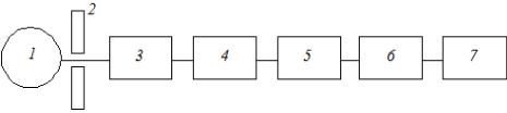 1 –источникизлучения;2–регуляторинтенсивностиизлучения;3–монохроматор (призма,дифракционнаярешетка,светофильтр);4–кюветноеотделение,дляпомещения образцов;5–детектор(фотоэлемент,термоэлемент);6 –усилительсигнала;