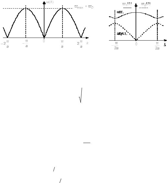 имеет две ветви (рис. 2.1.б). Нижняя ветвь (минус перед корнем в (2.4) соответствует акустическим колебаниям, верхняя ветвь (плюс перед корнем в (2.4) – оптическим колебаниям.