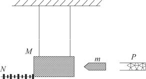 – баллистический маятник, представляющий собой массивный цилиндр массой M, подвешенный на невесомых и нерастяжимых нитях так, что он может двигаться только поступательно. Торце-