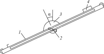 Приборы и принадлежности. Установка представляет собой наклонную плоскость 1, которую с помощью винта 2 можно устанавливать под разными углами α к горизонту (рис. 4.1). Угол α измеряется с помощью шкалы 3. На плоскость может быть помещен брусок 4 массой m, состоящий из двух частей, изготовленных из разных материалов: дерево и дюралюминий. Изменяя угол наклона плоскости, можно найти такой угол, при котором брусок скачком сдвинется с места и начнет скользить по плоскости. По этому углу можно рассчитать коэффициент трения покоя бруска.
