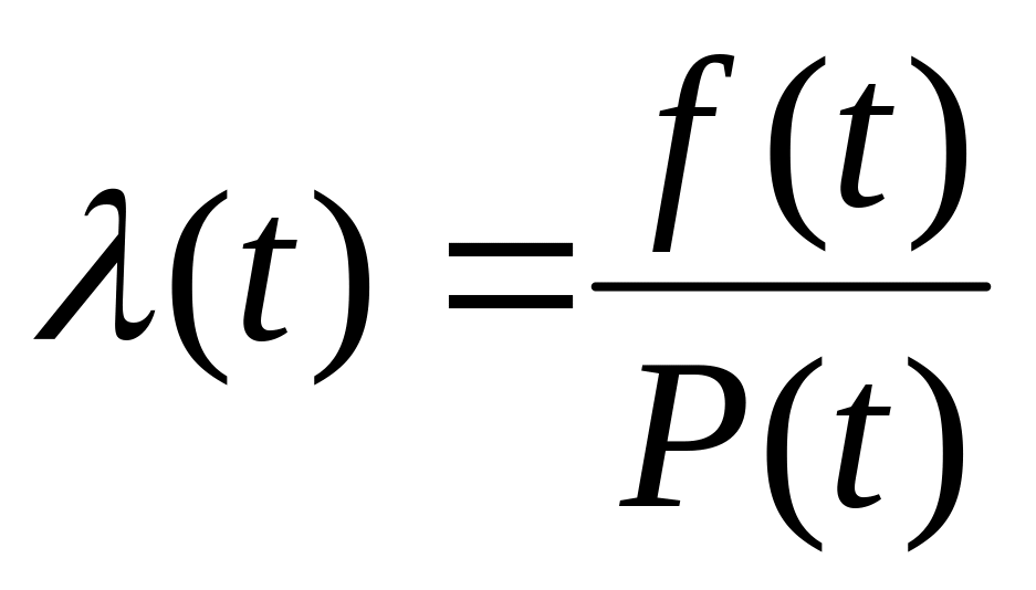 3.Интенсивность отказов (λ(t)) – условная плотность вероятности возникновения отказа невосстанавливаемого ТО, определяемого для рассматриваемого момента времени при условии, что до этого момента отказ не возник. Этот показатель не связан с моментом начала работы средства. Физический смысл плотности вероятности отказа – вероятность отказа в достаточно малую единицу времени (6). Интенсивность отказов представляет собой условную плотность распределения отказов в любой момент времени. Статистически λ*(t) показывает, какая доля отработавших в некоторый момент времени t невосстанавливаемых средств выходит из строя в единицу времени после этого момента (7):