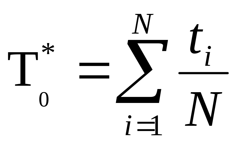 Т.е. средняя наработка до отказа (при экспоненциальном законе распределения отказов ТО) численно равна величине, обратной интенсивности отказов. Статистически средняя наработка до отказа (Т*0) определяется отношением суммы наработки эксплуатируемых объектов до отказа (ti) к количеству наблюдаемых средств (N), если они все отказали за время наблюдения (5):