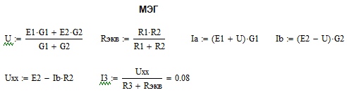 По МЭГ была упрощена исходная схема и получены значения тока короткого замыкания и напряжения холостого хода. Найдены значения мощностей, выделяемых на резисторах, потери мощности, а также КПД эквивалентного источника ЭДС.