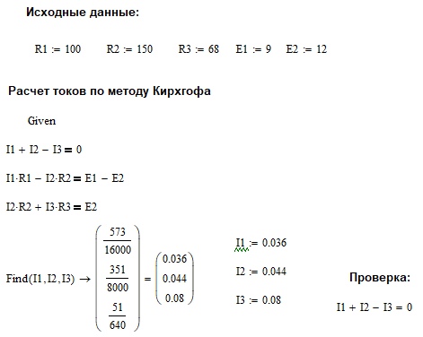 Подтверждены оба закона Кирхгофа гласящие: 1-алгебраическая сумма всех токов в узле равна нулю, и 2-алгебраичческая сумма падений напряжений на сопротивлениях равна сумме ЭДС, действующих в этом замкнутом контуре.