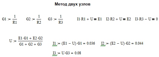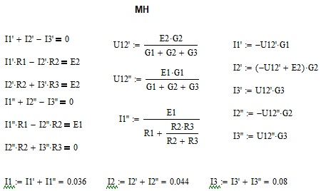 Метод наложения оказался верен – каждый истинный ток состоит из суммы двух составляющих его токов, образованных источниками ЭДС по отдельности.