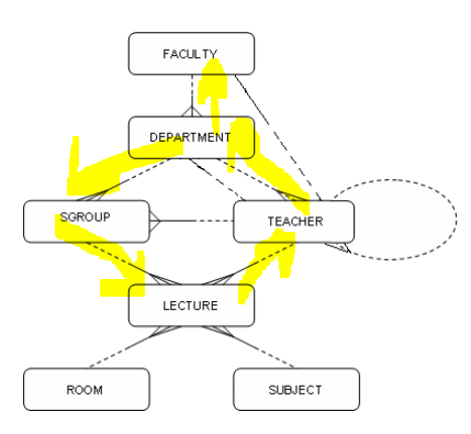 SELECT f.Name FROM DEPARTMENT source, TEACHER t, LECTURE l, SGROUP g, DEPARTMENT result, FACULTY f WHERE source.DepPK=g.DepFK AND g.GrpPK=l.GrpFK AND l.TchFK=t.TchPK AND t.DepFK= result.DepPK AND result.FacFK=f.FacPK AND source.Name= 'ИПО'