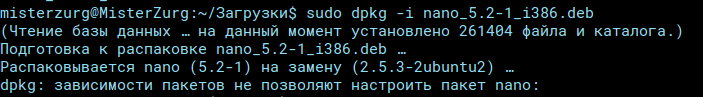 Устанавливаем пакет с помощью команды dpkg