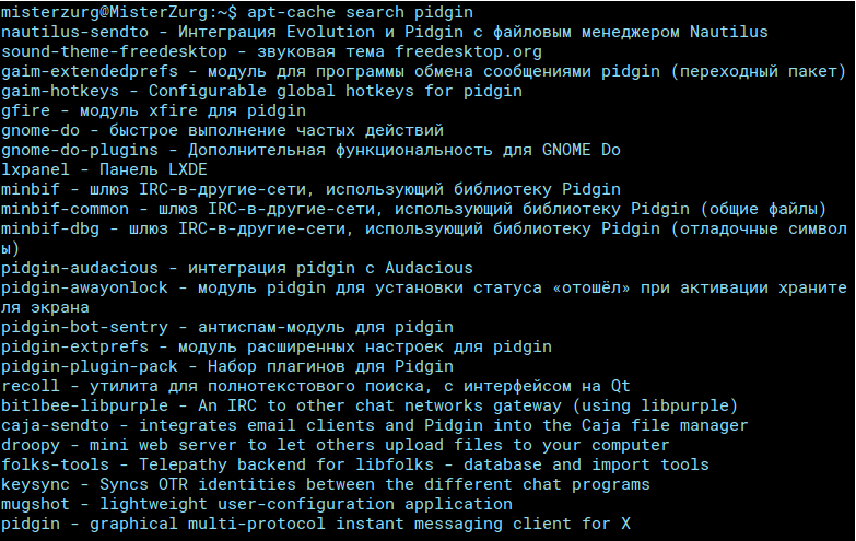 apt-cache search pidgin