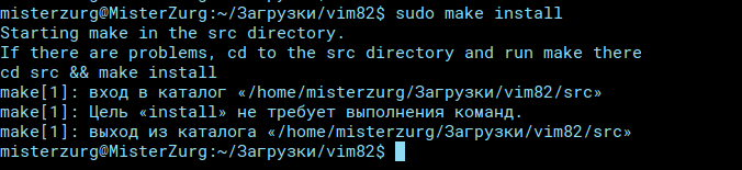 После успешного окончания пишем команду для установки скомпилированных файлов в нужные директории