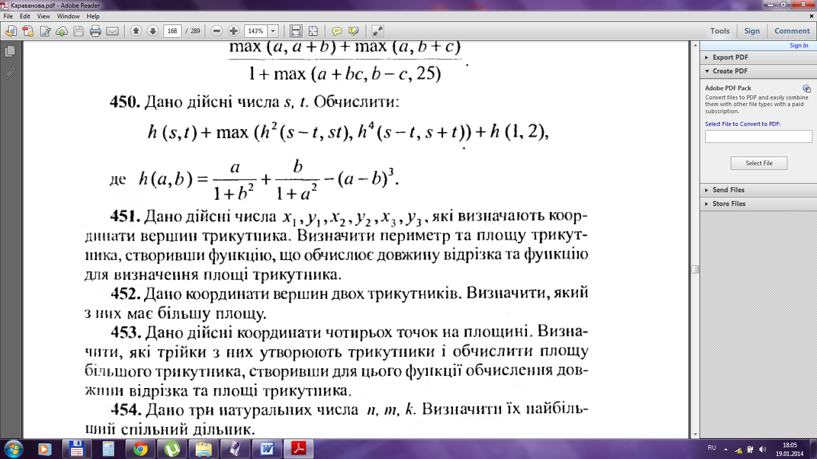 1. Дано дійсні числа х1, у1, х2, у2, х3, у3, що визначають координати вершин трикутника. Визначити периметр цього трикутника, створивши підпрограму, що обчислює довжину відрізка. Підпрограму розмістити в окремому модулі. |