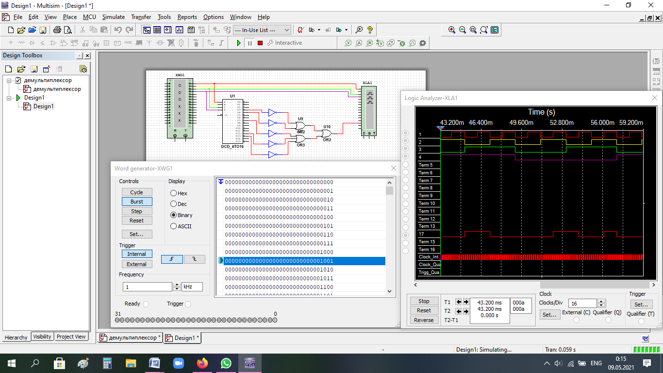 Работа демультиплексора в Multisim