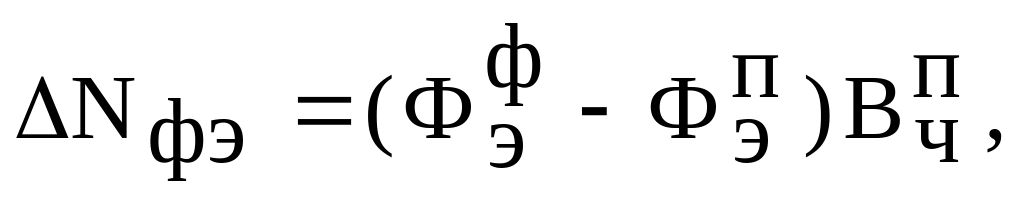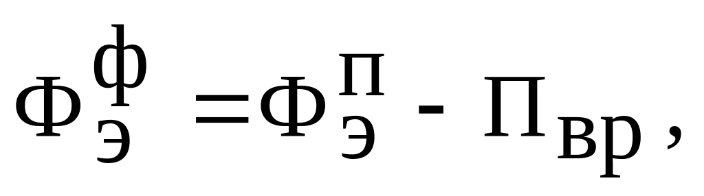 (снижение объема выпуска продукции и фондоотдачи) осуществляется путем сравнения фактического эффективного фонда рабочего времени и фактической среднечасовой производительности оборудования с их плановым уровнем.