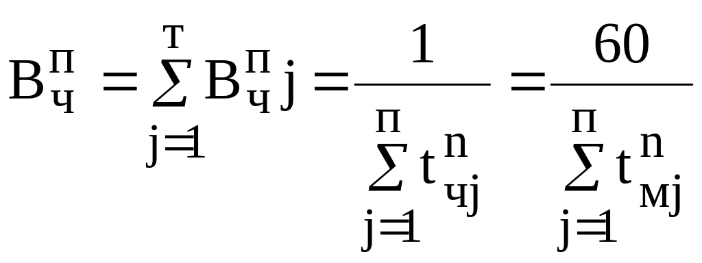 Число видов оборудования цеха, охваченных наблюдением (равно количеству рабочих мест) j |