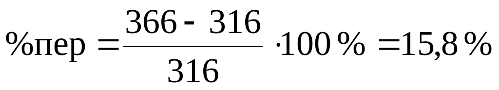 1. Определяем процент перевыполнения плана: