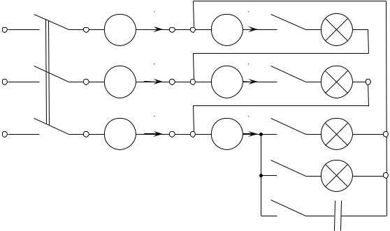 Вфазу ab включите лампу Л1, в фазу bc – Л2, в фазу ca – Л3. В этом и каждом последующем пунктах исследования измерьте величины, указанные