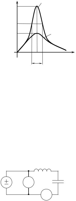 Токи, протекающие через индуктивность и емкость в цепи на рис. 7.1, б, при резонансе компенсируют друг друга и могут во много раз быть больше тока источника. Отношение действующего значения тока любого из реактивных элементов к току источника при 0 называют добротностью параллельного контура: