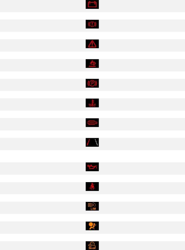 Красные сигнализаторы используются для основных предупреждений. Прежде чем продолжить движение, водитель или квалифицированный специалист должен немедленно выяснить причину появления такого предупреждения.