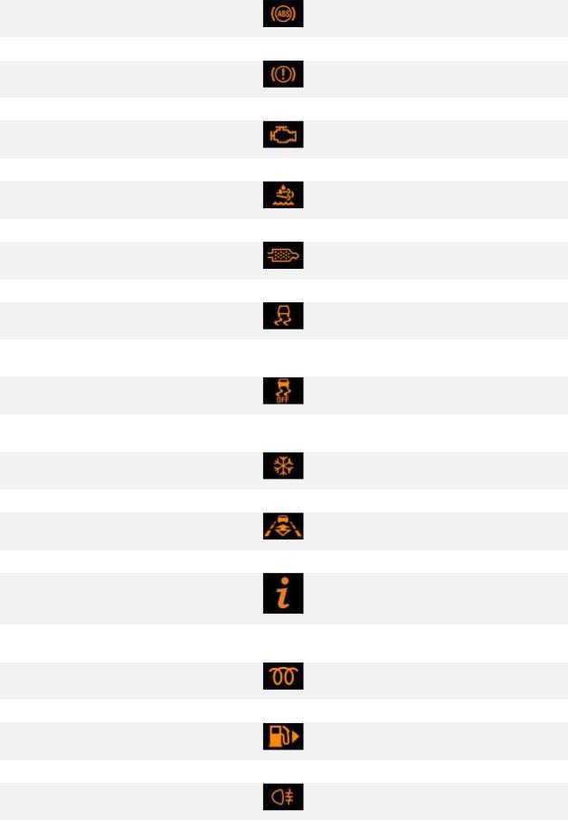 Следующие предупреждающие и информационные сигнализаторы могут загораться на панели приборов: