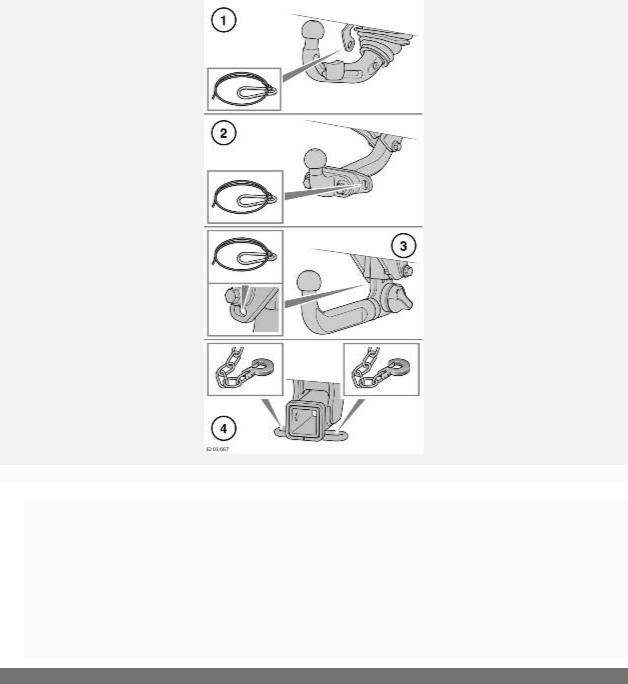 При буксировке убедитесь, что страховочный трос или страховочные цепи закреплены в соответствующих местах, как показано на рисунке.