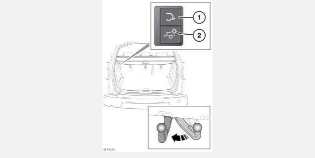 Сложить или разложить выдвижную шаровую опору можно также при помощи кнопок, расположенных в багажном отделении. Откройте дверь багажного отделения для получения доступа и активации кнопок.