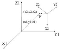 Х1Y1Z1 в системі координат Х2Y2Z2.