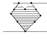 а) змістити координати вершин контура або горизонталі заповнення так, щоб горизонталі не потрапляли у вершини (це призведе до спотворення форми полігону);