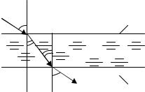 а)модель ідеального заломлення – промінь відхиляється на границі двох середовищ, причому промінь, що падає, заломлений і нормаль лежать в одній площині (тут також лежить і зеркально відображений промінь)