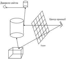 1. Джерела світла випромінюють промені в усіх напрямках і ці промені простежуються доти, доки не потраплять в екран. В процесі відслідковування обчислюються зміни інтенсивності і напрямку променя.
