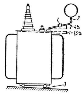 2.Трансформаторы, оборудованные газовой защитой должны устанавливаться так, чтобы крышка бака трансформатора имела подъём по направлению к газовому реле не менее 1%, а маслопровод от бака к расширителю не менее 2%.