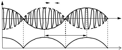 і вираз ωt + α розглядати як різницю фаз, що повільно змінюється з часом за лінійним законом. Результуючий рух у цьому випадку відбувається по повільно змінній кривій, яка буде послідовно набирати форми, що відповідає всім значенням різниці фаз від − π до + π .