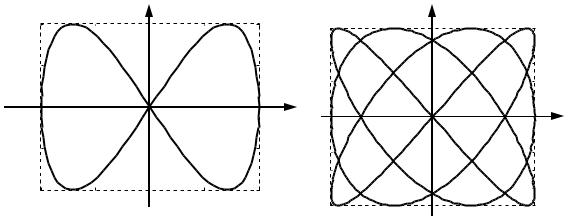 4 Якщо частоти взаємно перпендикулярних коливань не однакові, то траєкторії результуючого руху мають вигляд досить складних кривих, які називаються фігурами Ліссажу. На рис. 30.3 і рис. 30.4 наведені приклади таких фігур. Іноді фігурами Ліссажу називають також і траєкторії (зокрема, еліптичні криві), які виникають при складанні взаємно перпендикулярних коливань однакової частоти.