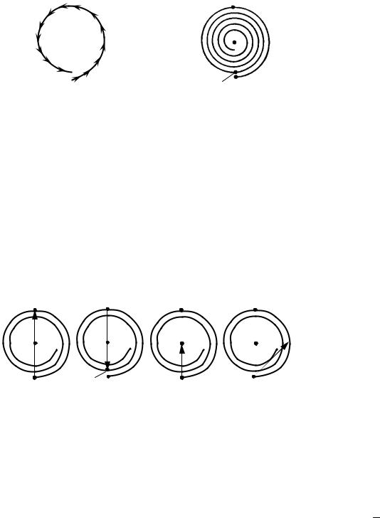 5 Розв’яжемо задачу про поширення світла від джерела S до точки P методом графічного додавання амплітуд. Розіб'ємо хвильову поверхню на кільцеві зони, аналогічні зонам Френеля, але набагато менші за шириною (різниця ходу від країв зони до точки P становить однакову для всіх зон малу частину λ ). Коливання, що створюється у точці P такою зоною, зобразимо у вигляді вектора, довжина якого дорівнює амплітуді коливання, а кут, який утворений таким вектором із напрямком, взятим за початок відліку, буде дорівнювати початковій фазі коливання (використовуємо метод векторних діаграм). Амплітуда коливань, які створюються такими зонами в точці P , повільно зменшується при переході від зони до зони. Кожне наступне коливання відстає від попереднього за фазою на одну і ту саму величину. Отже, векторна діаграма, яку ми отримуємо при додаванні коливань, що збуджується окремими зонами, має вигляд, показаний на рис. 55.3.