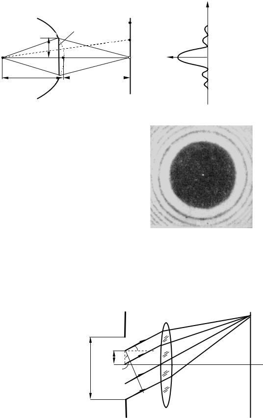 Рисунок 57.1 а – Схема отримання дифракції на диску; б – графік інтенсивності