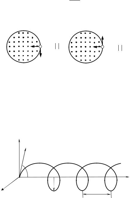 Таким чином, частинка в поперечній площині до магнітного поля рухається рівномірно по колу, а вздовж магнітного поля рухається зі сталою швидкістю. Результуючий рух є рухом частинки по спіралі, вісь якої паралельна магнітному полю (див. рис. 3.3).